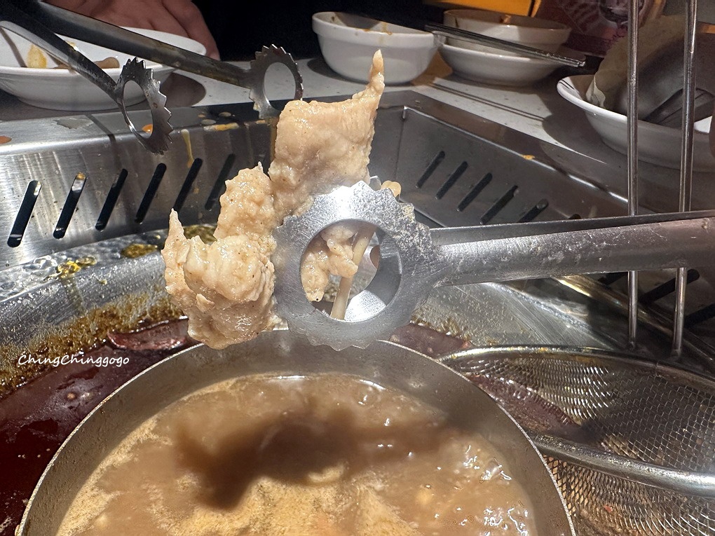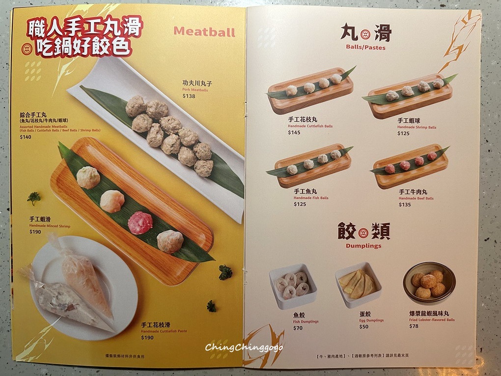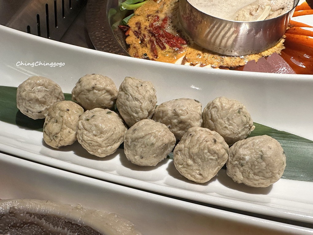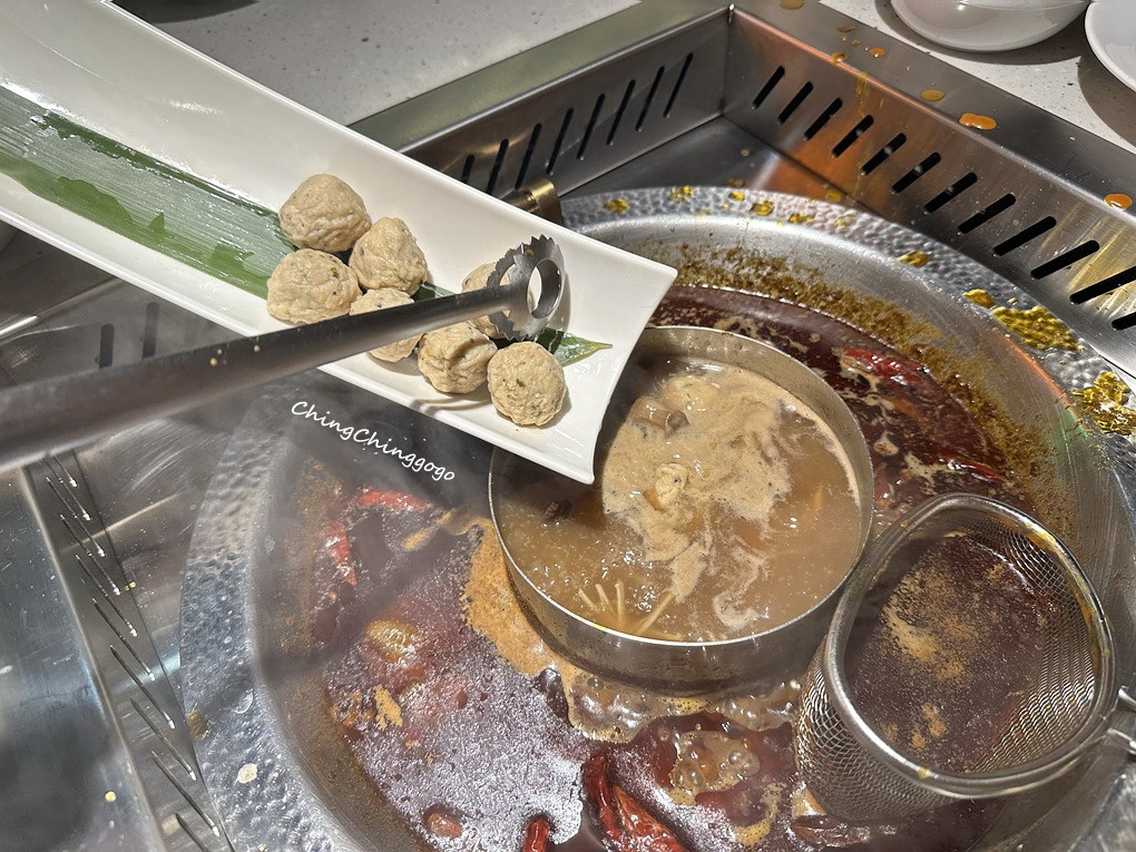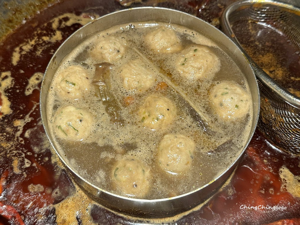 🔻功夫川丸子 (138元),丸子一入口,先是吸滿菌菇鍋湯底的鮮香,帶著淡淡的菇類清甜,咬下去時外層湯汁滲透而溫潤,內裡卻仍保有扎實彈牙的勁道,每一口都有肉與湯頭的融合,微帶黑胡椒等香料辣氣息,整體口感層次豐富,先鮮、再彈、後微辣,讓人忍不住一口接一口。