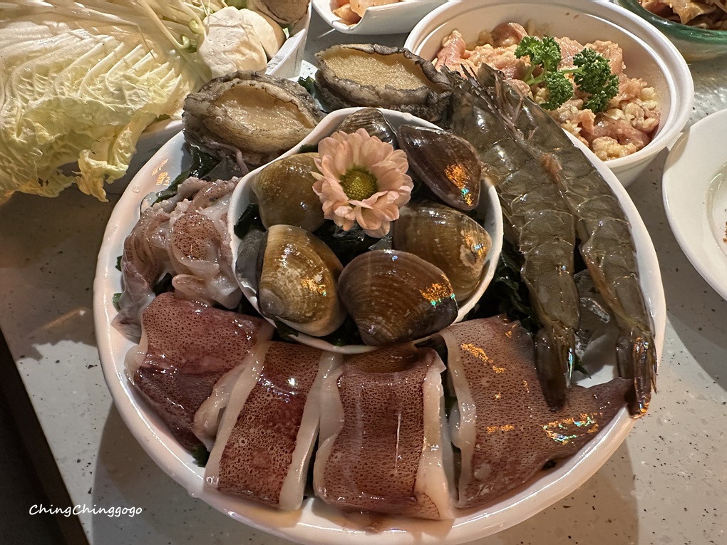 🔻鮮拚鮮贏盛合 (398元),小資族也想吃豐富的海鮮,那就來選這盤,有新鮮的鮑魚、小卷、白蝦及蛤蜊,海鮮的光澤與色澤就已經讓人食指大動,興高采烈的涮入鍋中後,看著每一種食材都吸滿湯底精華,呈現出各自獨特的口感層次 !!
