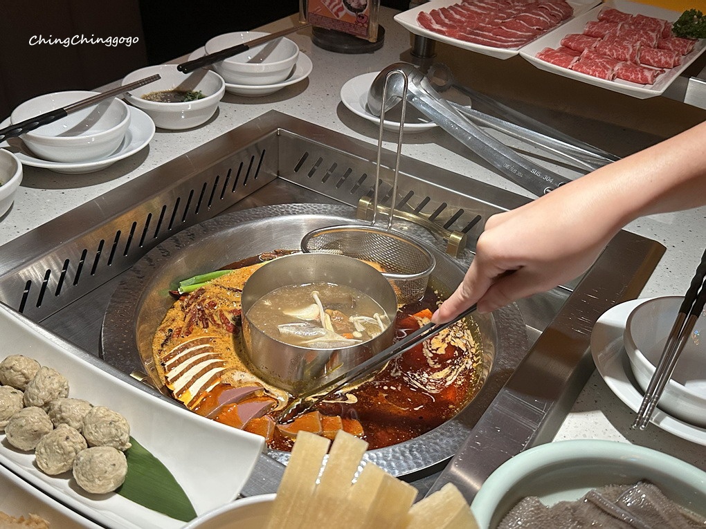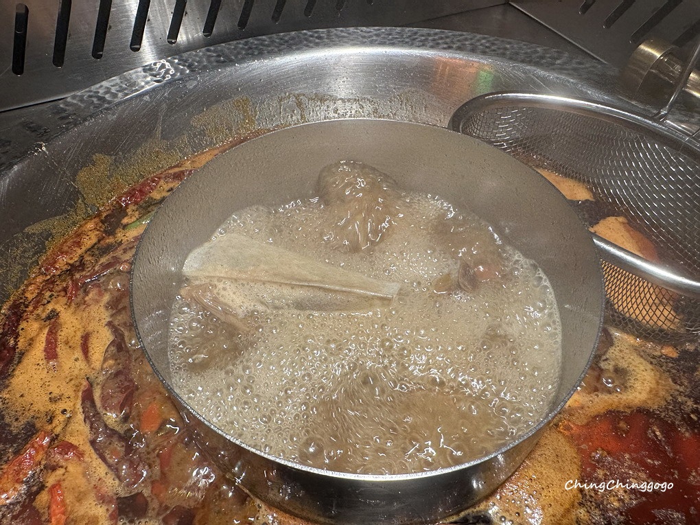 🥘麻辣鍋 :採用多塊牛油和多種特殊香料放入鍋底,再倒入高湯,煮滾即是屬重油重麻重香重辣,香辣氣息充斥著周圍,這味重口的正宗重慶老火鍋湯汁,只適合涮不適合喝,晴晴兒迫不及待來涮肉肉嘍~
