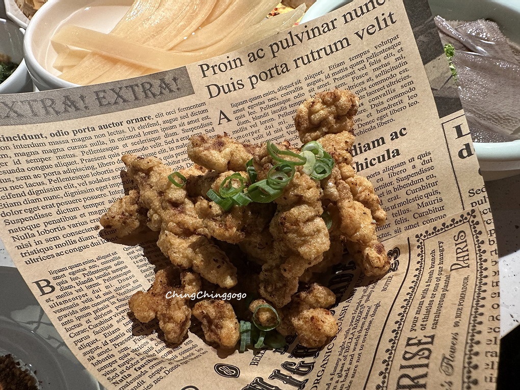 🔻饞嘴小酥肉 (100元),外皮炸得酥脆不刮嘴,裹粉不厚、鎖汁剛好,裡面的豬肉軟嫩多汁,外酥內嫩還帶點肥瘦相間的油潤,越嚼越香,尤其是裹上一層麻辣乾碟,帶來溫潤的麻辣風味,吃著吃著嘴巴微微發麻,但又讓人上癮到不行 !!