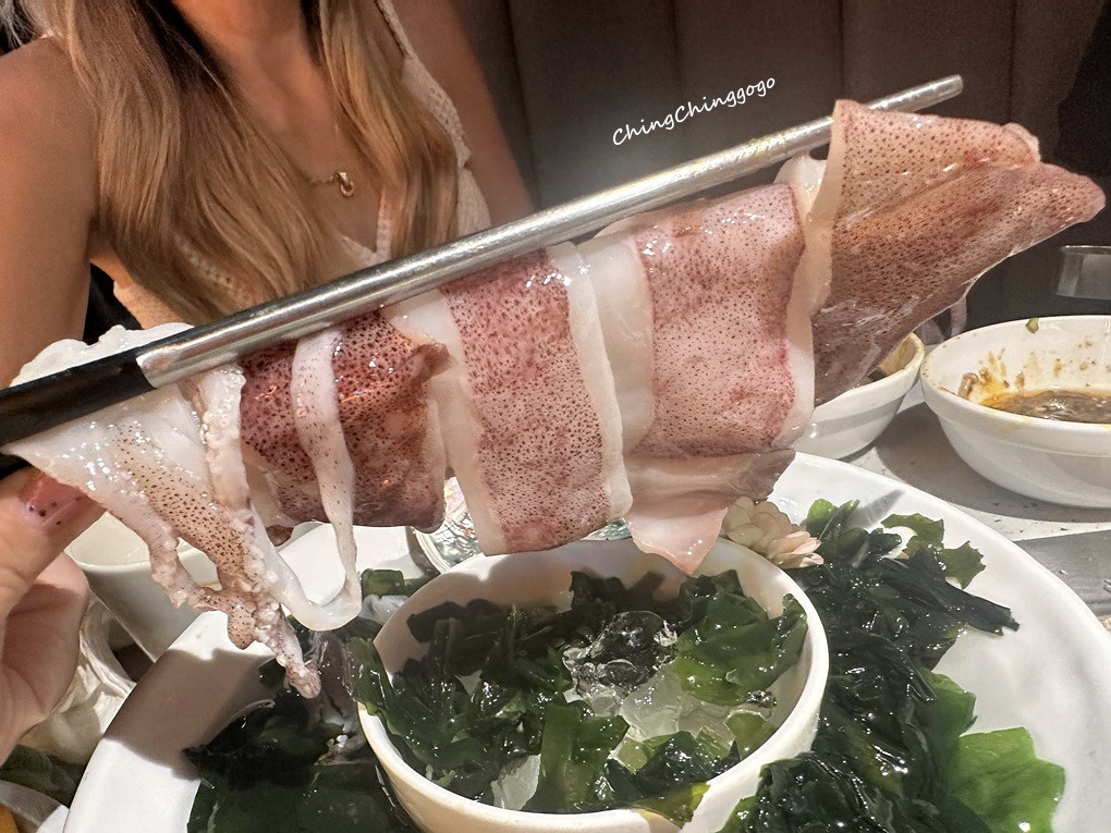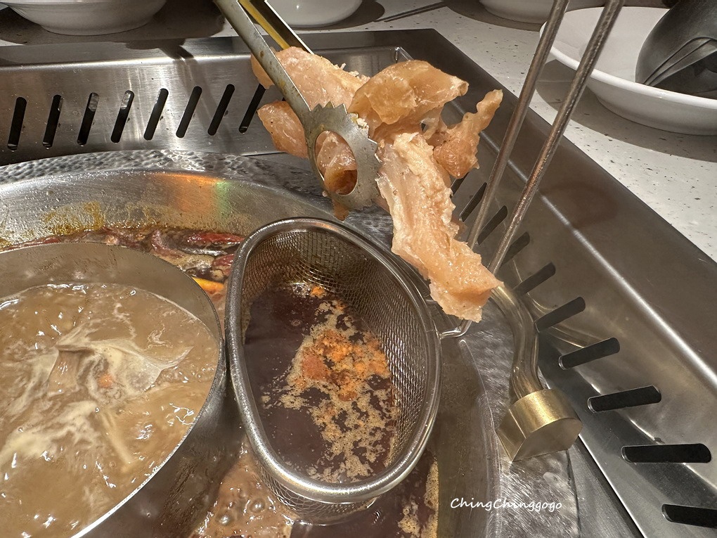 鮑魚入口厚實帶彈性,細嚼能感受到肉質的鮮甜和微微咀嚼,濃郁湯汁滲透其中,帶來柔中帶勁的口感,另外爽脆彈牙的小卷,輕輕咀嚼就能感受到,海味的清甜與湯底的香麻交織,彈性十足又不膩口!