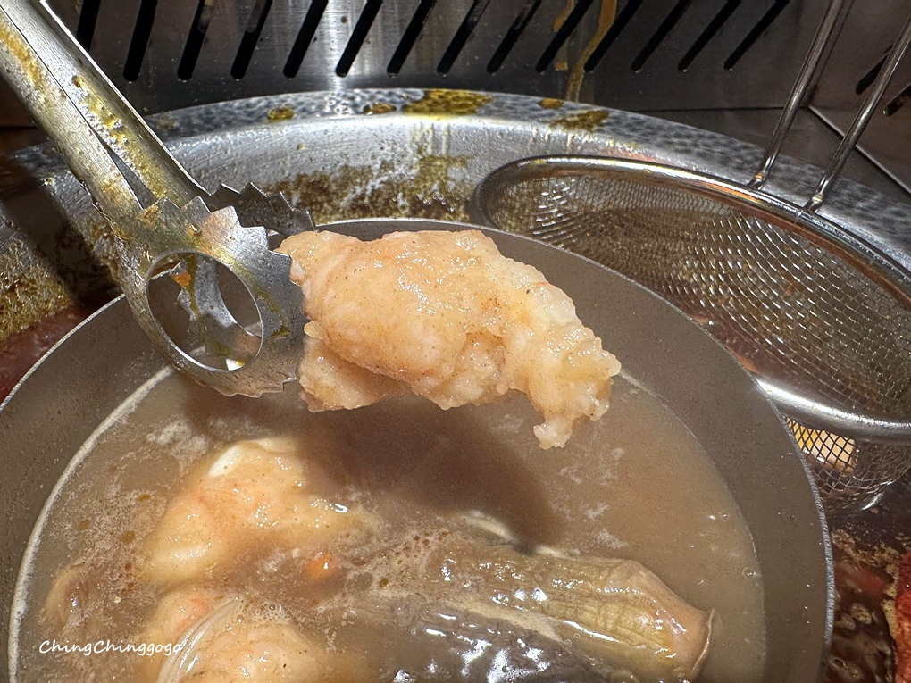 🔻手工蝦滑 (190元),放入麻辣鍋及菌菇鍋各半,撈起時圓潤飽滿,吃入嘴中先被那份扎實彈牙的口感驚豔,蝦肉細緻緊實,咬下去感受到鮮甜的汁水在口腔裡慢慢散開,麻辣、菌菇香滋味完全不同,雙雙平衡味蕾好美味,蝦蝦控必點呦~~~