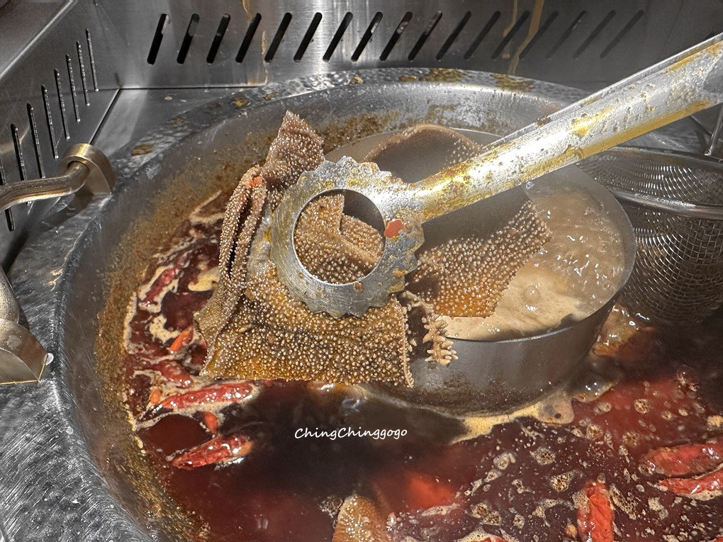 白蝦鮮嫩多汁,咬下去瞬間釋放甜味,外層吸附湯汁的麻辣香氣,鮮甜與麻香映襯,口感鮮明。
