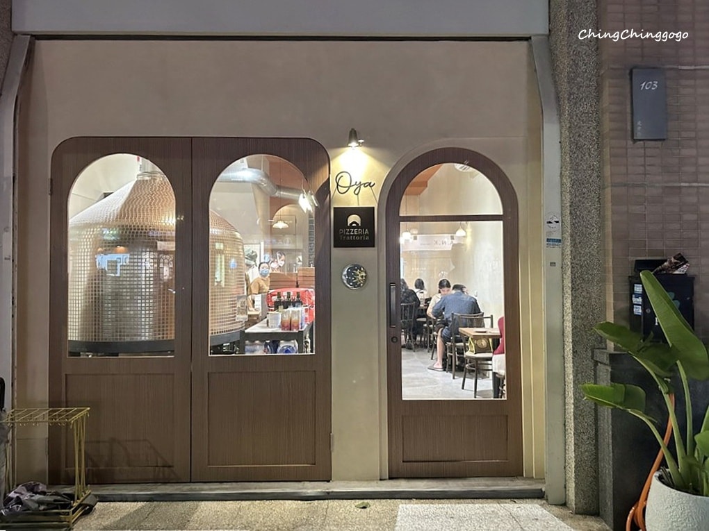Oya Pizzeria Trattoria店家位置在建中路清大學區附近,夜晚門口開燈簡約低調又明亮,看起來溫和暖洋洋的,放慢腳步輕輕走進,開始期待了。