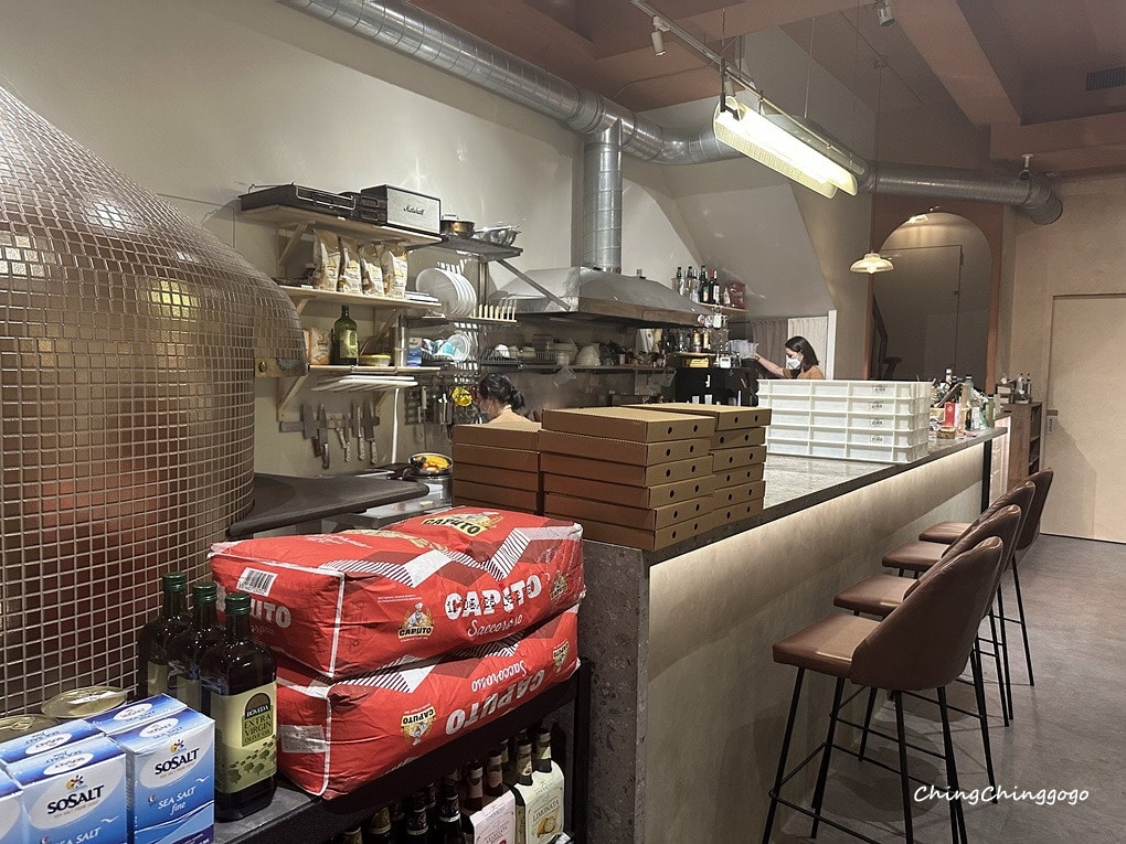 走進店內一眼望到的是,這Bling Bling金碧輝煌窯烤爐,小小木質調室內顯得有質感,料理烹調皆是現點現做,香氣撲鼻環繞周圍,坐在櫃檯高腳椅,還可以欣賞美食秀,報到後工作人員會迎接入座!