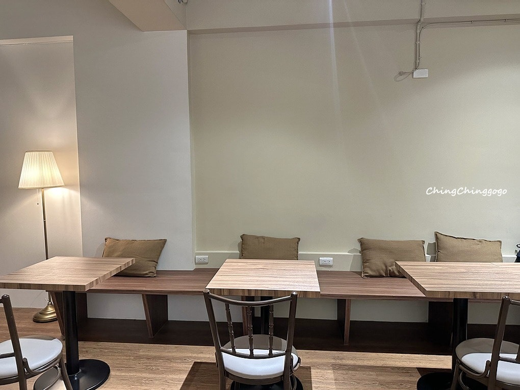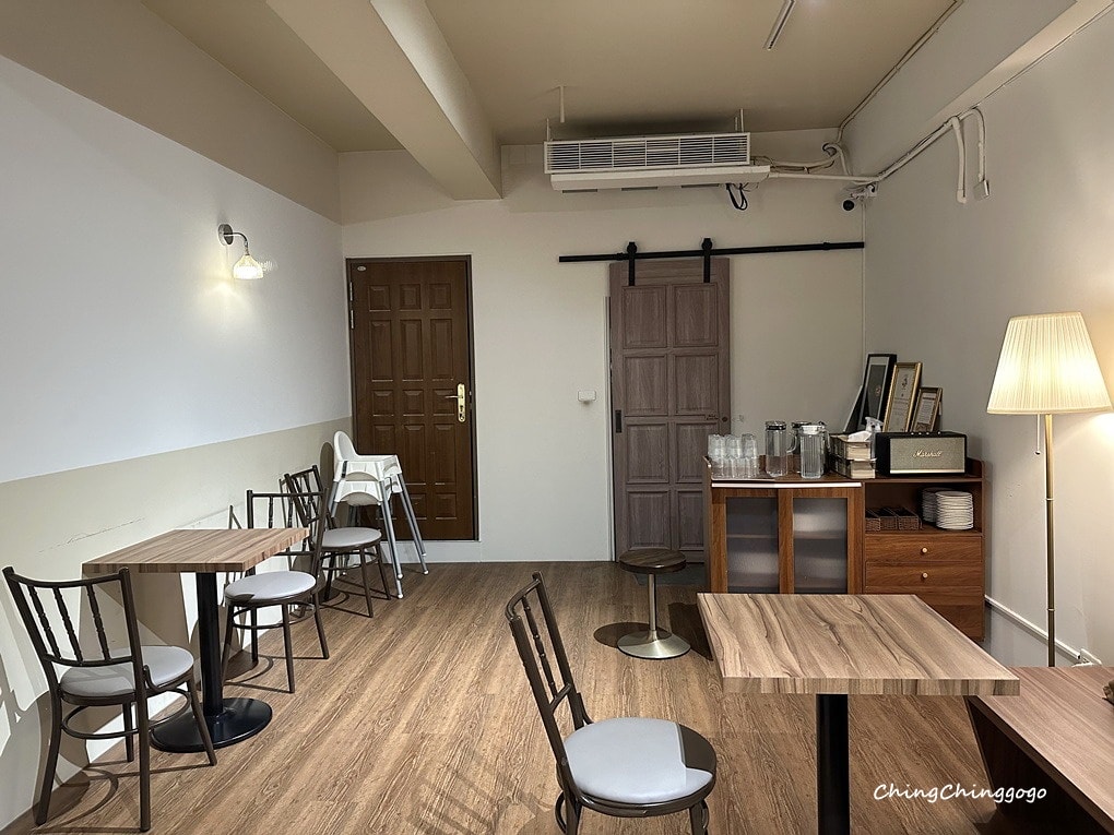 走上二樓的後方,一旁附有兒童座椅,各式刀、叉子、湯匙、盤子餐具和茶水給大家自取,舒適入座寬敞優雅環境,用餐時間瞬間很快的滿座,客人們邊吃美食邊聊天,感受得到用心打理唷~