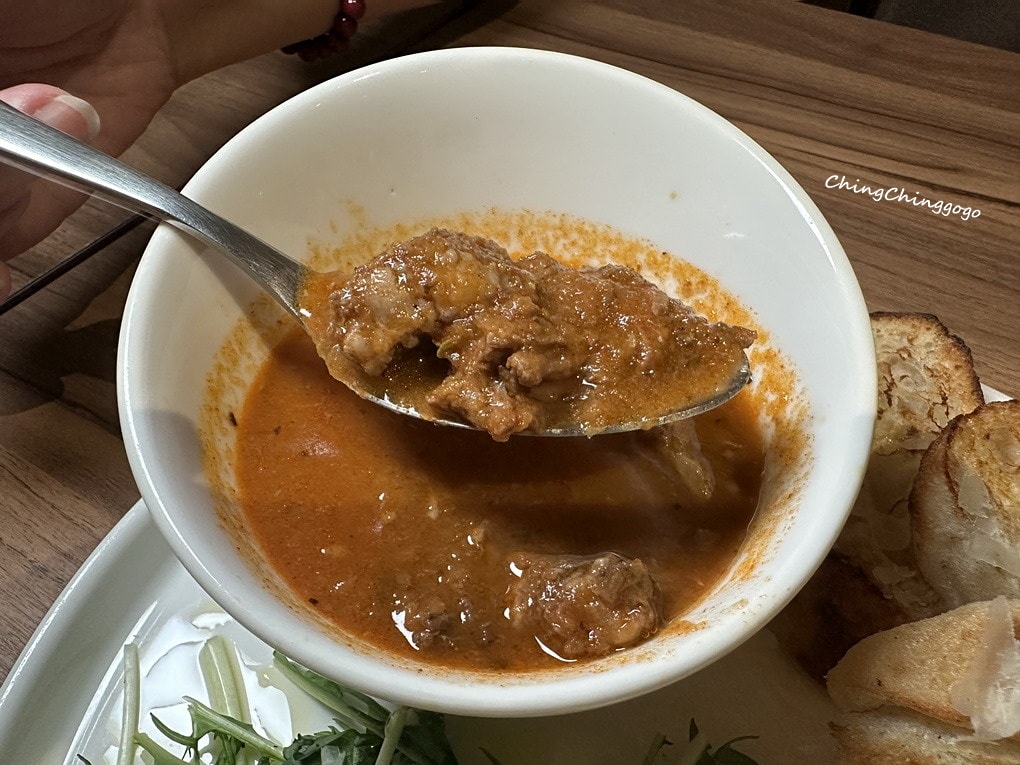 慢燉牛腹肉選用油花分布均勻的牛腹部位,經長時間燉煮軟嫩入味,融合番茄的自然酸甜,醬香濃卻不厚重,搭配附的外酥內嫩麵包與清爽芝麻葉生菜,口感豐富、濃郁不膩,適合慢慢品嚐的暖心主菜!